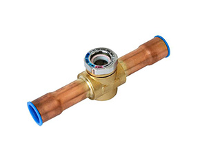 液體水份指示器的設(shè)計(jì)提供使用者一種準(zhǔn)確的方法來確定系統(tǒng)內(nèi)制冷劑的品質(zhì)和含水量。通過廣角的視鏡可以目視系統(tǒng)的制冷劑,因此很容易看到系統(tǒng)內(nèi)的氣泡或閃蒸氣體,表示冷媒劑量是否適當(dāng)需要填充。在目視鏡內(nèi)中心位置的指示器元件對(duì)水份高度靈敏,并隨著系統(tǒng)內(nèi)的水份含量的變化逐漸改變顏色。